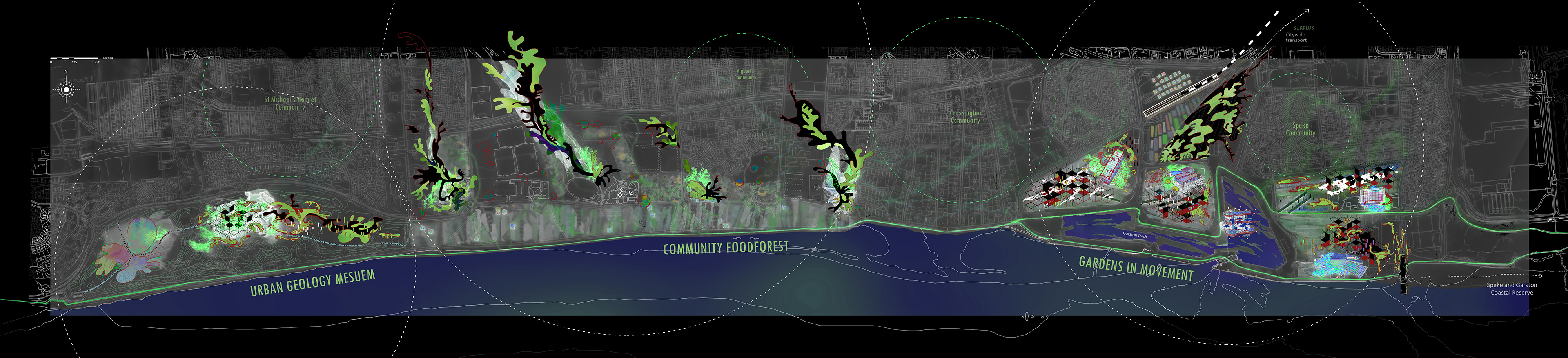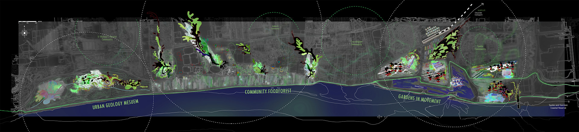 With climate change and geopolitical shifts jeopardising urban food sovereignty, Nomading 2050 employs the principles of feral methodology to reimagine the urban foodscape as a resilient, adaptable and symbiotic ecosystem. In a post-industrial context in Liverpool, this project emerges as a visionary response, pioneering a transformation in how the city perceives, coexists with, and harnesses the potential of the residual sites. A seasonal, localised diet revolution maps minimalist and sustainable nomadic ethos onto the pressing demands of urban living to 2050 and beyond.